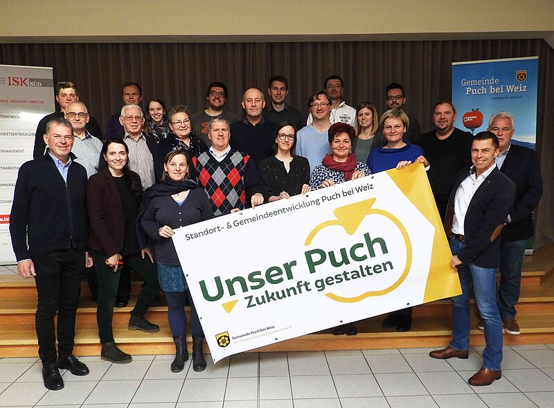 Beim zweitägigen Workshop zur Gemeindeentwicklung durften in der Volksschule Puch jeweils 25 aktive Pucherinnen und Pucher (repräsentativer Querschnitt der Berufs– und Altersgruppen, sowie alle Fraktionsverantwortlichen der Gemeinde Puch) begrüßt werden.